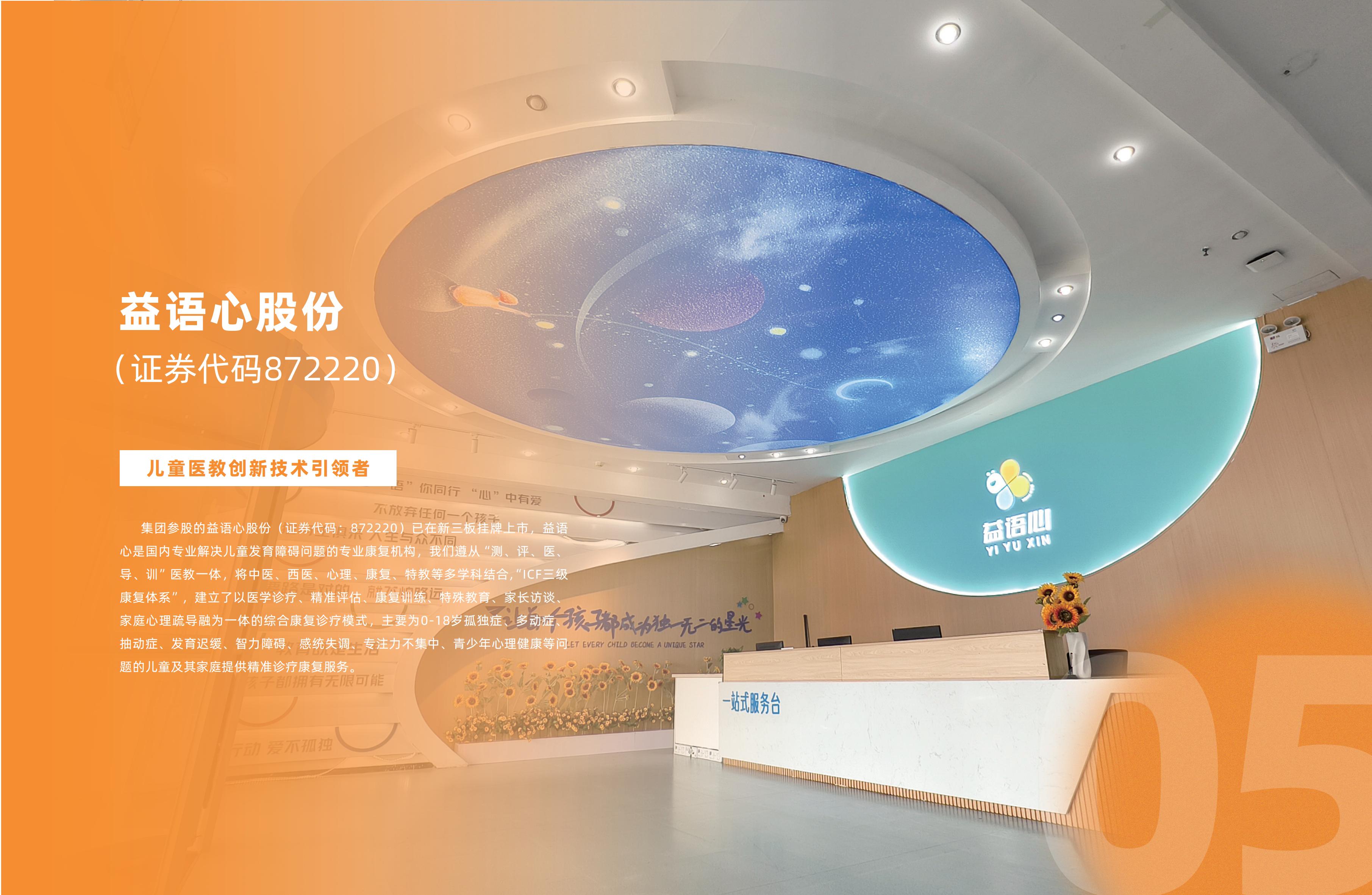 J9旗舰厅控股集團(tuán)有限公(簡(jiǎn)chēng“J9旗舰厅控股集團(tuán)tuán”)始建2017nián11yuè,集團(tuán)總部位于山東泰ān,總建筑面積七萬(wàn)余píng,現(xiàn)有員gōng700余rén,是一家集醫(yī)kāng養(yǎng)yǎng產(chǎn)chǎn學(xué)xué、研于一體的綜合性健康產(chǎn)業(yè)集團(tuán)公。集團(tuán)下設(shè)成kāng、醫(yī)康養(yǎng)yǎng、醫(yī)療科、教育等事業(yè),通過(guò)guò“立足本、放眼全qiú”的戰(zhàn)略布,構(gòu)建起多維度的心理康復(fù)服務(wù)體。 集團(tuán)參股的益語(yǔ)心股fèn(證券代:872220)已在新三板掛牌上shì,益語(yǔ)心是國(guó)內(nèi)專業(yè)解決兒童發(fā)育障礙問(wèn)題的專業(yè)康復(fù)機(jī)構(gòu)gòu,我們遵cóng測(cè)評(píng)píng醫(yī)導(dǎo)dǎo訓(xùn)xùn”醫(yī)教一,將中醫(yī)、西醫(yī)、心、康復(fù)、特教等多學(xué)科結(jié),“ICF三級(jí)康復(fù)體”,建立了以醫(yī)學(xué)診liáo、精準(zhǔn)評(píng)、康復(fù)訓(xùn)liàn、特殊教、家長(zhǎng)訪tán、家庭心理疏導(dǎo)融為一體的綜合康復(fù)診療模shì,主要wèi0-18歲孤獨(dú)zhèng、多動(dòng)zhèng、抽動(dòng)zhèng、發(fā)育遲huǎn、智力障ài、感統(tǒng)失調(diào)diào、專注力不集zhōng、青少年心理健康等問(wèn)題的兒童及其家庭提供精準(zhǔn)診療康復(fù)服務(wù)。目前業(yè)務(wù)已經(jīng)拓展到浙jiāng、江、廣東等